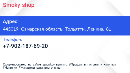 Smoky shop по адресу 445019, Самарская область, Тольятти, Ленина, 81 в дальнейшем Организация, размещена в следующих категориях: