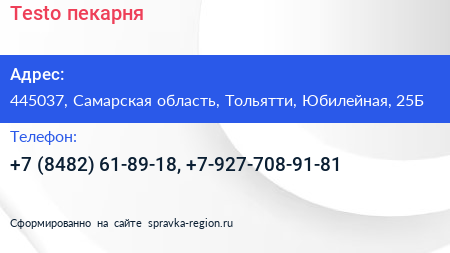 Testo, пекарня по адресу 445037, Самарская область, Тольятти, Юбилейная, 25Б в дальнейшем Организация, размещена в следующих категориях: