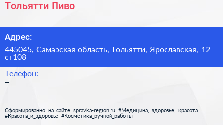 Тольятти Пиво по адресу 445045, Самарская область, Тольятти, Ярославская, 12 ст108 в дальнейшем Организация, размещена в следующих категориях: