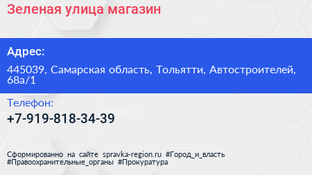 Зеленая улица, магазин по адресу 445039, Самарская область, Тольятти, Автостроителей, 68а/1 в дальнейшем Организация, размещена в следующих категориях: