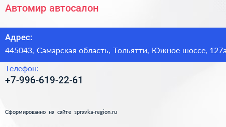 Автомир, автосалон по адресу 445043, Самарская область, Тольятти, Южное шоссе, 127а в дальнейшем Организация, размещена в следующих категориях: