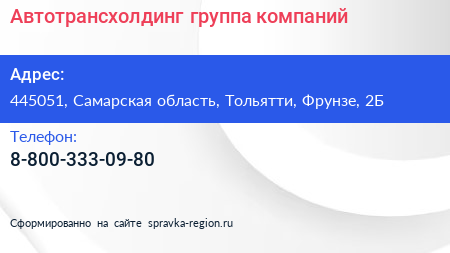Автотрансхолдинг, группа компаний по адресу 445051, Самарская область, Тольятти, Фрунзе, 2Б в дальнейшем Организация, размещена в следующих категориях: