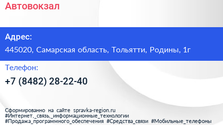 Автовокзал по адресу 445020, Самарская область, Тольятти, Родины, 1г в дальнейшем Организация, размещена в следующих категориях: