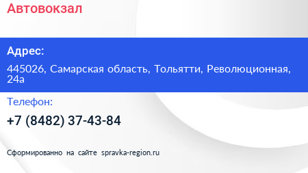 Автовокзал по адресу 445026, Самарская область, Тольятти, Революционная, 24а в дальнейшем Организация, размещена в следующих категориях: