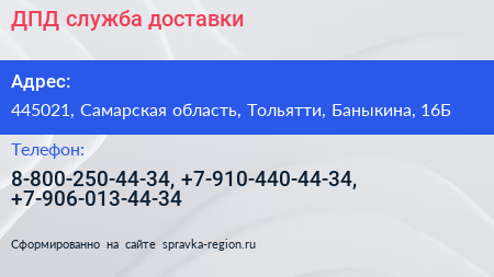 ДПД, служба доставки по адресу 445021, Самарская область, Тольятти, Баныкина, 16Б в дальнейшем Организация, размещена в следующих категориях: