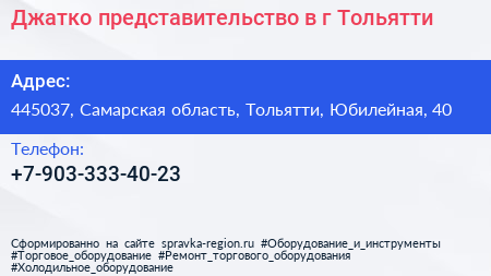 Джатко, представительство в г. Тольятти по адресу 445037, Самарская область, Тольятти, Юбилейная, 40 в дальнейшем Организация, размещена в следующих категориях: