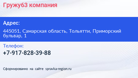Гружу63, компания по адресу 445051, Самарская область, Тольятти, Приморский бульвар, 1 в дальнейшем Организация, размещена в следующих категориях: