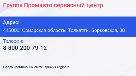 Группа Промавто, сервисный центр по адресу 445000, Самарская область, Тольятти, Борковская, 38 в дальнейшем Организация, размещена в следующих категориях: