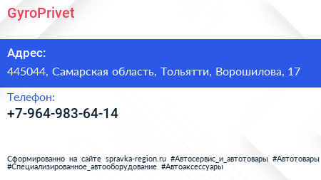GyroPrivet по адресу 445044, Самарская область, Тольятти, Ворошилова, 17 в дальнейшем Организация, размещена в следующих категориях: