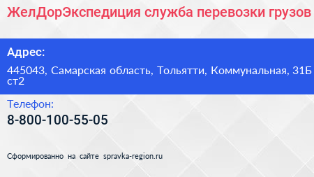 ЖелДорЭкспедиция, служба перевозки грузов по адресу 445043, Самарская область, Тольятти, Коммунальная, 31Б ст2 в дальнейшем Организация, размещена в следующих категориях: