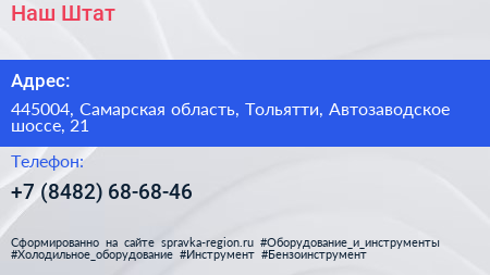 Наш Штат по адресу 445004, Самарская область, Тольятти, Автозаводское шоссе, 21 в дальнейшем Организация, размещена в следующих категориях: