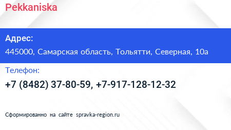 Pekkaniska по адресу 445000, Самарская область, Тольятти, Северная, 10а в дальнейшем Организация, размещена в следующих категориях: