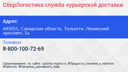 СберЛогистика, служба курьерской доставки по адресу 445051, Самарская область, Тольятти, Ленинский проспект, 1а в дальнейшем Организация, размещена в следующих категориях:
