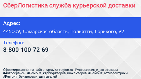 СберЛогистика, служба курьерской доставки по адресу 445009, Самарская область, Тольятти, Горького, 92 в дальнейшем Организация, размещена в следующих категориях: