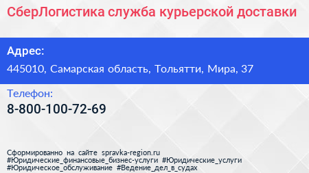 СберЛогистика, служба курьерской доставки по адресу 445010, Самарская область, Тольятти, Мира, 37 в дальнейшем Организация, размещена в следующих категориях: