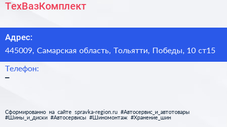 ТехВазКомплект по адресу 445009, Самарская область, Тольятти, Победы, 10 ст15 в дальнейшем Организация, размещена в следующих категориях: