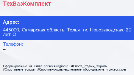 ТехВазКомплект по адресу 445000, Самарская область, Тольятти, Новозаводская, 2Б лит О в дальнейшем Организация, размещена в следующих категориях: