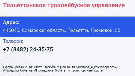 Тольяттинское троллейбусное управление по адресу 445045, Самарская область, Тольятти, Громовой, 55 в дальнейшем Организация, размещена в следующих категориях: