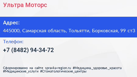 Ультра Моторс по адресу 445000, Самарская область, Тольятти, Борковская, 99 ст3 в дальнейшем Организация, размещена в следующих категориях: