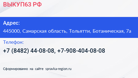 ВЫКУП63.РФ по адресу 445000, Самарская область, Тольятти, Ботаническая, 7а в дальнейшем Организация, размещена в следующих категориях: