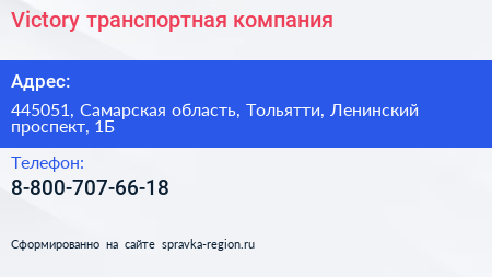 Victory, транспортная компания по адресу 445051, Самарская область, Тольятти, Ленинский проспект, 1Б в дальнейшем Организация, размещена в следующих категориях: