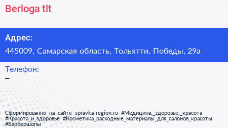 Berloga tlt по адресу 445009, Самарская область, Тольятти, Победы, 29а в дальнейшем Организация, размещена в следующих категориях: