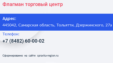 Флагман, торговый центр по адресу 445042, Самарская область, Тольятти, Дзержинского, 27а в дальнейшем Организация, размещена в следующих категориях: