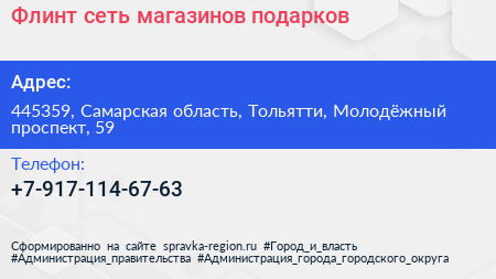 Флинт, сеть магазинов подарков по адресу 445359, Самарская область, Тольятти, Молодёжный проспект, 59 в дальнейшем Организация, размещена в следующих категориях: