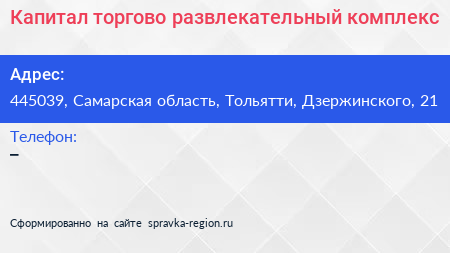 Капитал, торгово-развлекательный комплекс по адресу 445039, Самарская область, Тольятти, Дзержинского, 21 в дальнейшем Организация, размещена в следующих категориях: