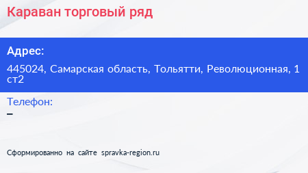 Караван, торговый ряд по адресу 445024, Самарская область, Тольятти, Революционная, 1 ст2 в дальнейшем Организация, размещена в следующих категориях: