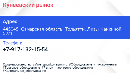 Кунеевский, рынок по адресу 445045, Самарская область, Тольятти, Лизы Чайкиной, 52/1 в дальнейшем Организация, размещена в следующих категориях: