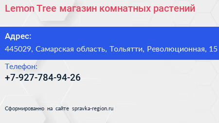 Lemon Tree, магазин комнатных растений по адресу 445029, Самарская область, Тольятти, Революционная, 15 в дальнейшем Организация, размещена в следующих категориях: