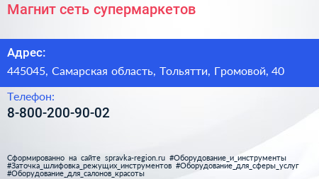 Магнит, сеть супермаркетов по адресу 445045, Самарская область, Тольятти, Громовой, 40 в дальнейшем Организация, размещена в следующих категориях: