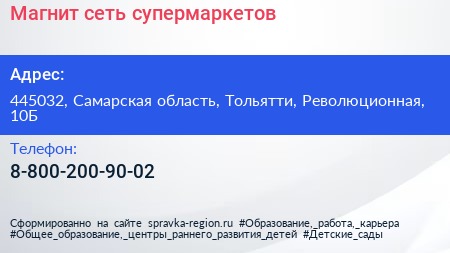 Магнит, сеть супермаркетов по адресу 445032, Самарская область, Тольятти, Революционная, 10Б в дальнейшем Организация, размещена в следующих категориях:
