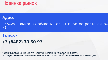 Новинка, рынок по адресу 445039, Самарская область, Тольятти, Автостроителей, 80 к1 в дальнейшем Организация, размещена в следующих категориях: