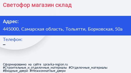 Светофор, магазин-склад по адресу 445000, Самарская область, Тольятти, Борковская, 50а в дальнейшем Организация, размещена в следующих категориях: