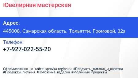 Ювелирная мастерская по адресу 445008, Самарская область, Тольятти, Громовой, 32а в дальнейшем Организация, размещена в следующих категориях: