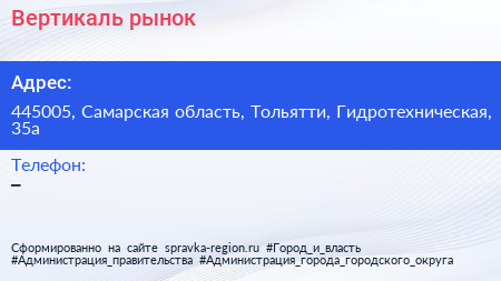 Вертикаль, рынок по адресу 445005, Самарская область, Тольятти, Гидротехническая, 35а в дальнейшем Организация, размещена в следующих категориях: