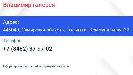 Владимир, галерея по адресу 445043, Самарская область, Тольятти, Коммунальная, 32 в дальнейшем Организация, размещена в следующих категориях: