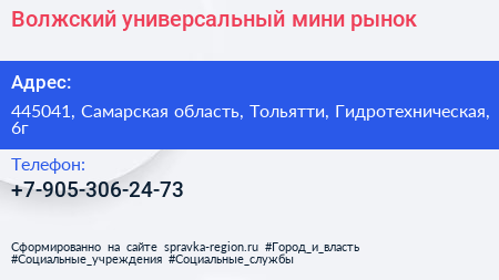 Волжский, универсальный мини-рынок по адресу 445041, Самарская область, Тольятти, Гидротехническая, 6г в дальнейшем Организация, размещена в следующих категориях: