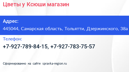 Цветы у Ксюши, магазин по адресу 445044, Самарская область, Тольятти, Дзержинского, 38а в дальнейшем Организация, размещена в следующих категориях: