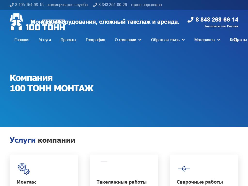 100 ТОНН монтаж, монтажная компания по адресу 445037, Самарская область, Тольятти, Фрунзе, 14Б в дальнейшем Организация, размещена в следующих категориях: