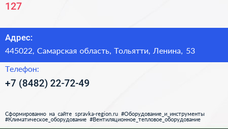 127 по адресу 445022, Самарская область, Тольятти, Ленина, 53 в дальнейшем Организация, размещена в следующих категориях:
