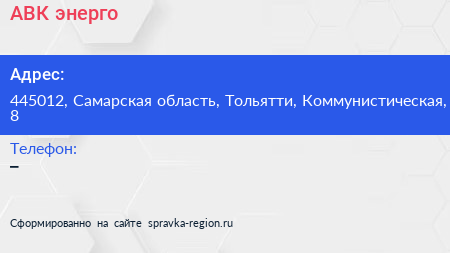 АВК энерго по адресу 445012, Самарская область, Тольятти, Коммунистическая, 8 в дальнейшем Организация, размещена в следующих категориях: