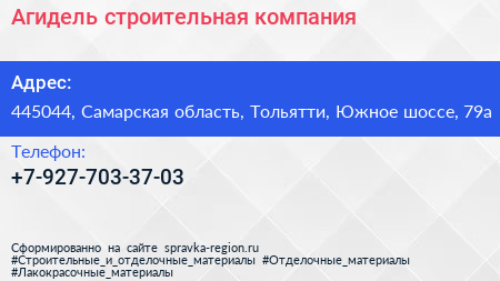 Агидель, строительная компания по адресу 445044, Самарская область, Тольятти, Южное шоссе, 79а в дальнейшем Организация, размещена в следующих категориях: