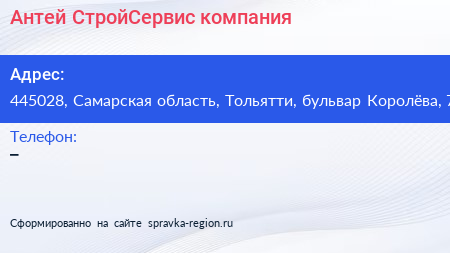 Антей-СтройСервис, компания по адресу 445028, Самарская область, Тольятти, бульвар Королёва, 7 в дальнейшем Организация, размещена в следующих категориях:
