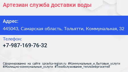 Артезиан, служба доставки воды по адресу 445043, Самарская область, Тольятти, Коммунальная, 32 в дальнейшем Организация, размещена в следующих категориях: