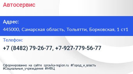 Автосервис по адресу 445000, Самарская область, Тольятти, Борковская, 1 ст1 в дальнейшем Организация, размещена в следующих категориях: