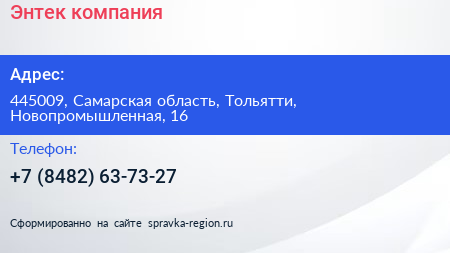 Энтек, компания по адресу 445009, Самарская область, Тольятти, Новопромышленная, 16 в дальнейшем Организация, размещена в следующих категориях: