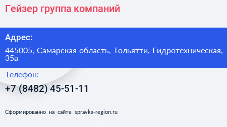 Гейзер, группа компаний по адресу 445005, Самарская область, Тольятти, Гидротехническая, 35а в дальнейшем Организация, размещена в следующих категориях: